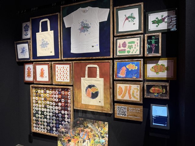 「スケッチオーシャン」では、自分が描いた魚がスクリーンの海を泳ぎ、そのデザインをグッズとして購入することもできます。