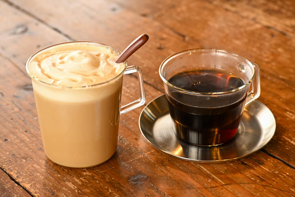 深煎りのコーヒーはしっかりとした香りがあり、すっきりとした後味が特徴です。豆乳カフェオレは豆乳のまろやかさが引き立ち、甘さが控えめのスイーツにも合わせやすい内容になっています。