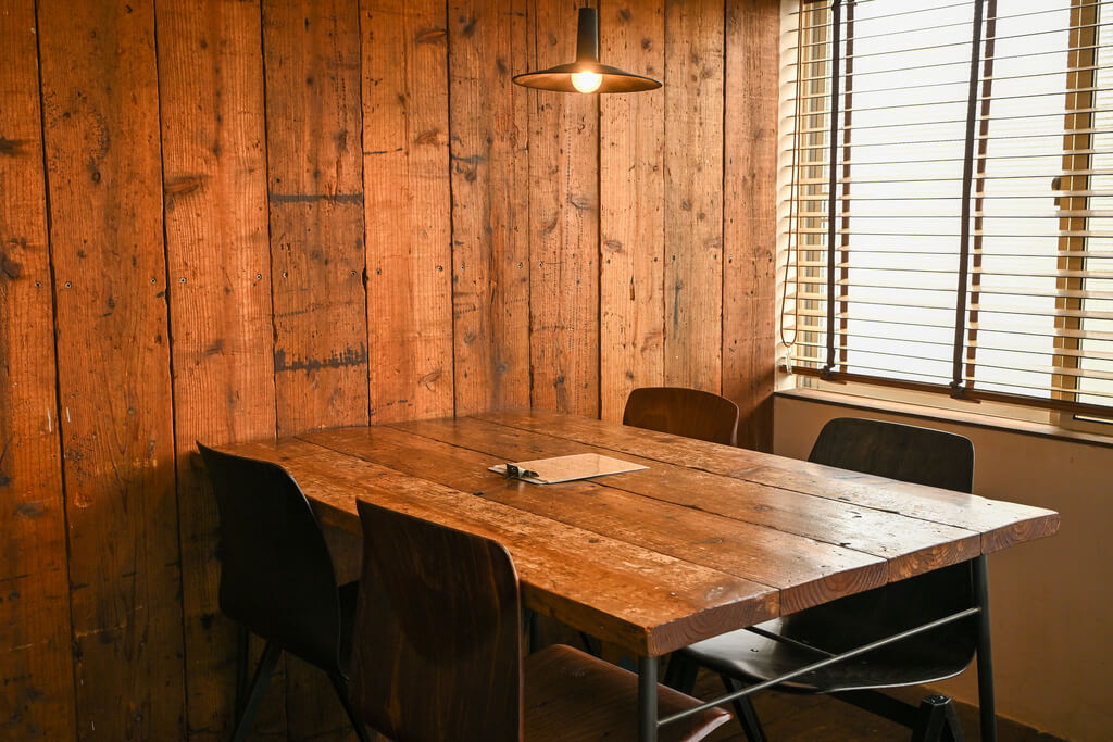 店内は木の家具でまとめられ、入った瞬間からやわらかい空気に包まれます。席に座ると店内の静かな雰囲気が伝わり、落ち着いて食事に向き合える空間です。