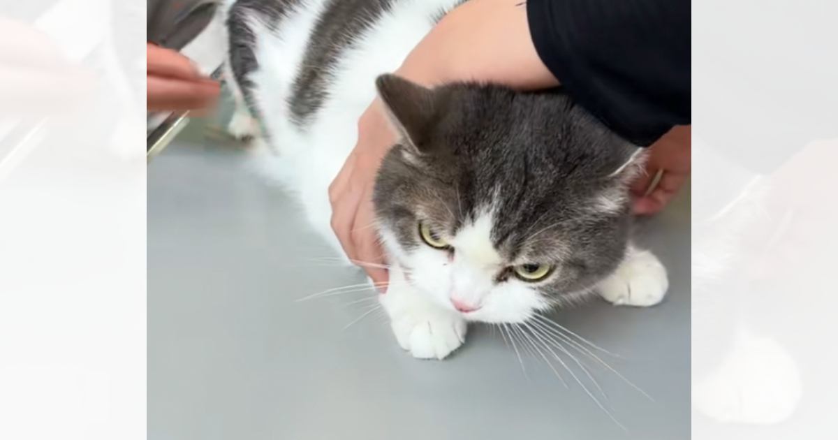月1回の爪切り→猫を動物病院へ連れて行くと…予想外の『反撃』に「控え目な態度が可愛すぎるw」「ニヤニヤしてしまったw」と50万再生