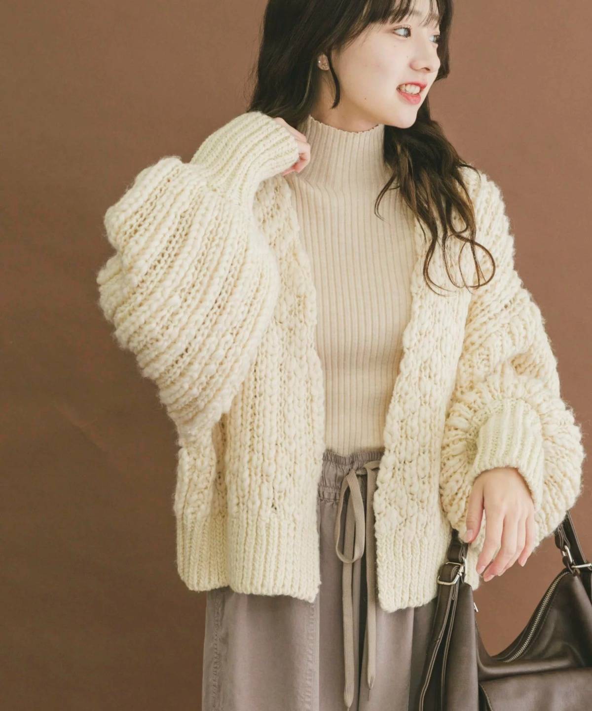 程よくボリュームのある手編み風のカーディガンは、あたたかみのある風合いが素敵♡