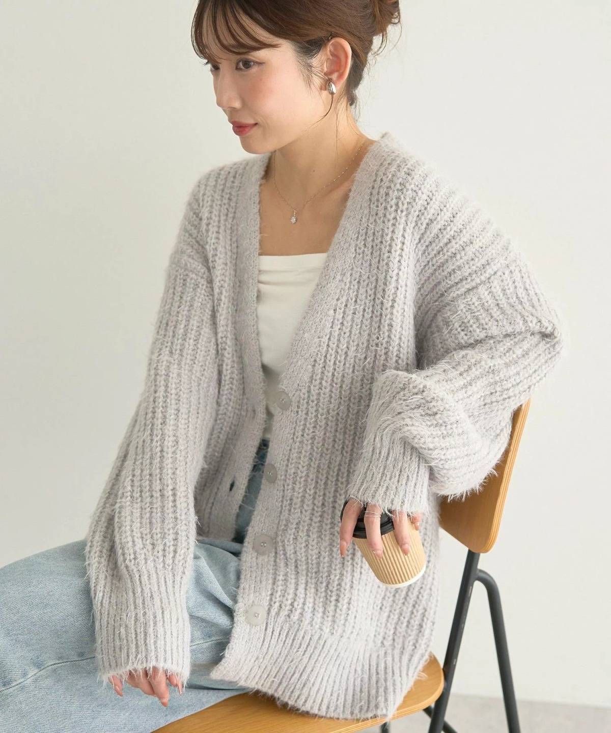 ふんわり質感のシャギーニットカーディガンは、肌触りの良さが魅力♡