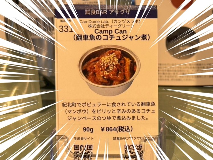 ラーメンからキングポークといったお食事系から、シャインマスカットやパイナップルケーキといったスイーツ系まで舌鼓を打ち、ちょっとした試食のフルコースを楽しんでいた中で、ある缶詰と目が合った。