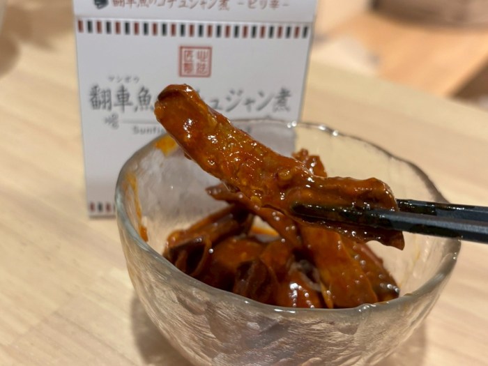 他にも、「マンボウの味噌和え ゆず風味」などがあるため、辛い物が完全に苦手な方はこちらに挑戦してみるのもいいかもしれない。