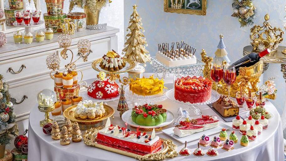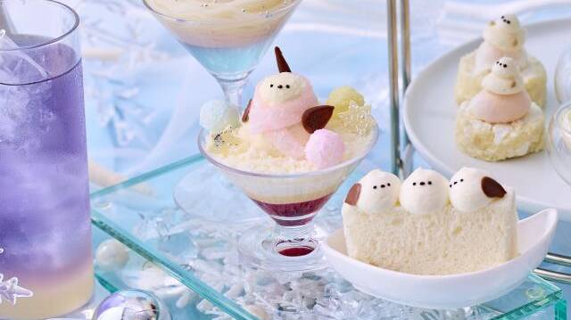 いちごを使用し、雪の結晶やスノーマンモチーフのスイーツがズラリと揃います。