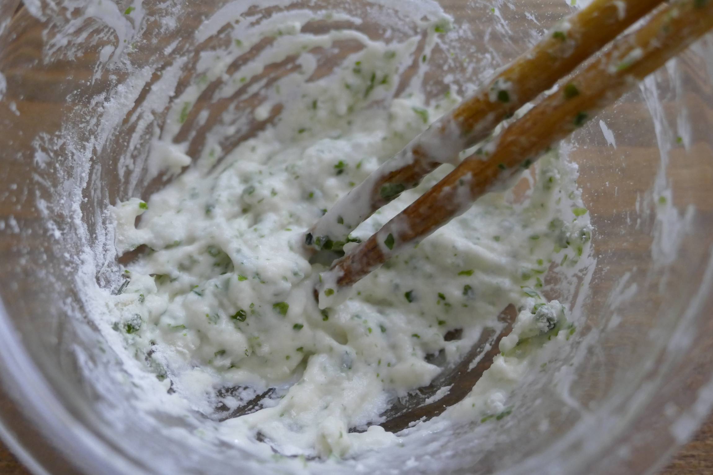 薄力粉、青のり、水を混ぜて衣を作ります。