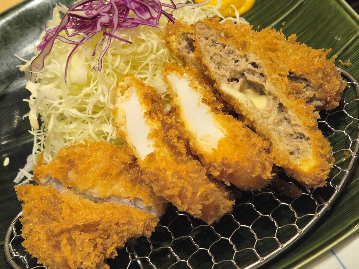 メンチカツはジューシーなお肉の美味しさを堪能できる味わいで、とろとろチーズたっぷり。
