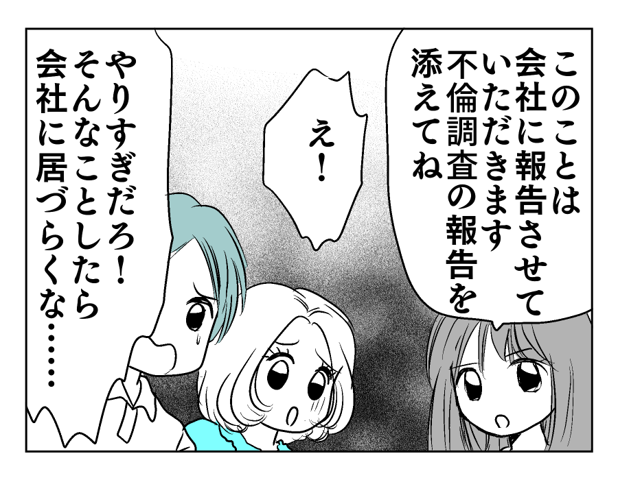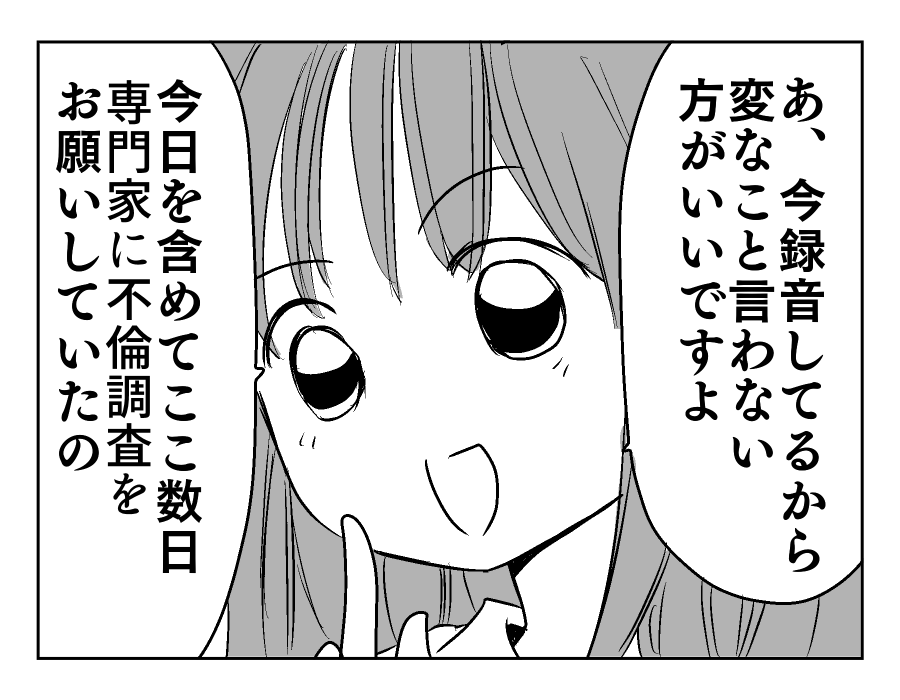 【編集部コメント】 今後の話し合いをするため、遊園地から移動したユズキさんとマモルさん。もちろん不倫相手と義両親も一緒です。そこでユズキさんから衝撃の発言が……。なんとユズキさんはここ数日、マモルさんたちの行動を調べていたのです。遊園地で2人で会っている現場を押さえても、言い逃れをされてしまうこともあるでしょう。そうならないために、確固たる証拠を押さえておこうと考えたのですね。冷静に行動できてグッジョブです!