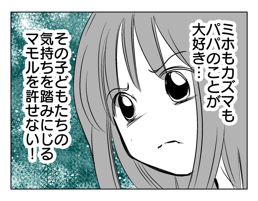 【編集部コメント】 子どもたちにとって嬉しいことがあったとき、誰よりも共有したい相手がユズキさんとマモルさんなのです。嬉しそうにマモルさんのことを話すわが子を見て、ユズキさんも今後の方向性が見えてきたようですね。いかに罪深いことをしているかということを、しっかりマモルさんに分からせたいと思うユズキさん。この際思いっきりやっちゃってください! 頑張れ、ユズキさん!