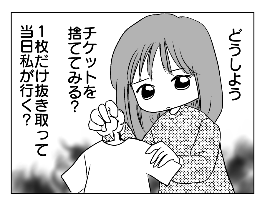 【編集部コメント】 チケットをカバンから抜いておけば、イルミネーション点灯式への入場を阻止することはできるかもしれません。ただ新たに別のチケットを買い直すとか、別の場所へ行ってしまうとか、マモルさんが不倫相手と過ごす方法はいくらでもあるでしょう。チケットを奪ったところで、マモルさんが不倫をしていることに変わりないのです。どうしたらいいのかユズキさんも悩ましいところですね。