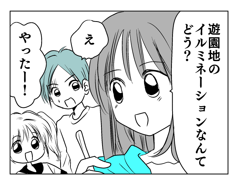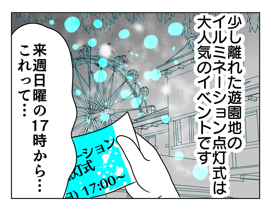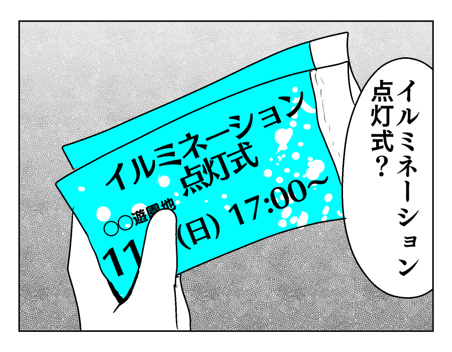 【編集部コメント】 仕事が休みの日に、子どもたちを公園へ連れ出してくれたマモルさん。ユズキさんもその間落ち着いて家事ができるでしょうし、積極的に子どもたちと触れ合ってくれる素敵なパパなのですね。しかし偶然触れたマモルさんのカバンから、イルミネーション点灯式のチケットが……。家族で行こうと思ったのでしょうか? それにしてはユズキさんが何も知らない様子なのは気になります。