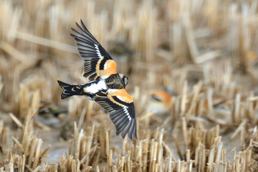 その後、早春の農耕地や河川敷などでも時折アトリの群れを見かけることになりました。決して珍しい鳥ではなく、数も多く、出会いはしばしばあります。冬の平地の公園でも見かけます。