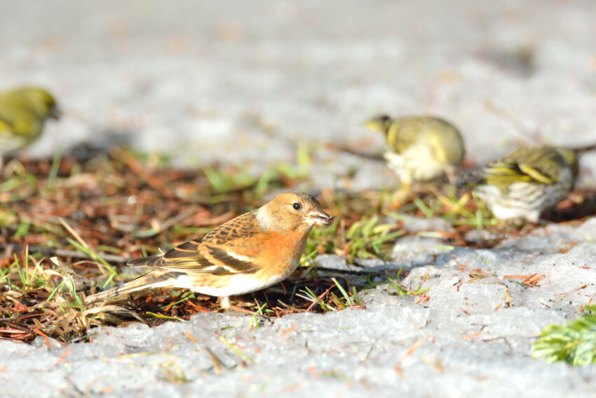 そういえば、アトリの学名montifringillaのモンティは「山の」という意味です。平地にもいるにもかかわらず、人々は古くからこの鳥に対して”山のもの”という印象を持っていたことを物語る学名なのだと思います。ヨーロッパなどでは「山のフィンチ」といえばアトリを指すそうです。