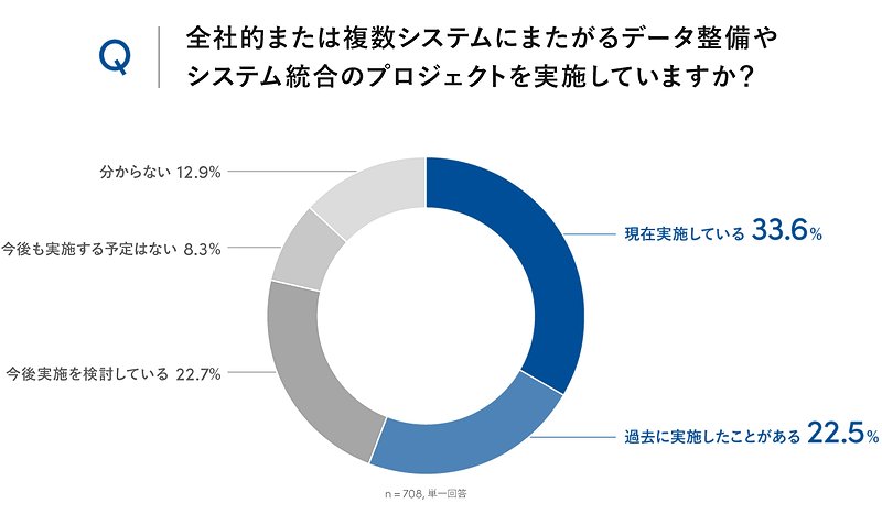 一方で、3割以上の企業がシステム統合やデータ整備のプロジェクトを進行中で、すでに取り組みを終えた企業も含めると、その割合は過半数に達する(56.1%)。