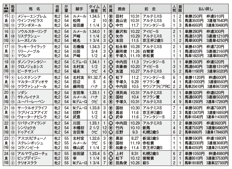阪神ジュベナイルフィリーズ 過去10年のデータ