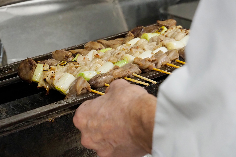 田辺さん:変えたところは、ほとんどないですね。唐揚げの味付け、焼き鳥のタレ、ずっとそのままです。タレについては、継ぎ足し継ぎ足しでずっときています。うちの焼き鳥は、串1本にレバーと長ネギ、鶏皮と砂肝が刺さっていて、その1種類だけ。これもずっと前から変わっていません。
