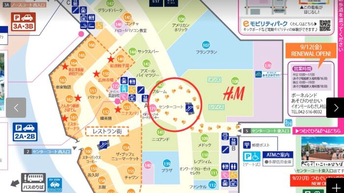 『イオンクレジットカードセンター』や『ニコアンド』、『H&M』などがあるところです。