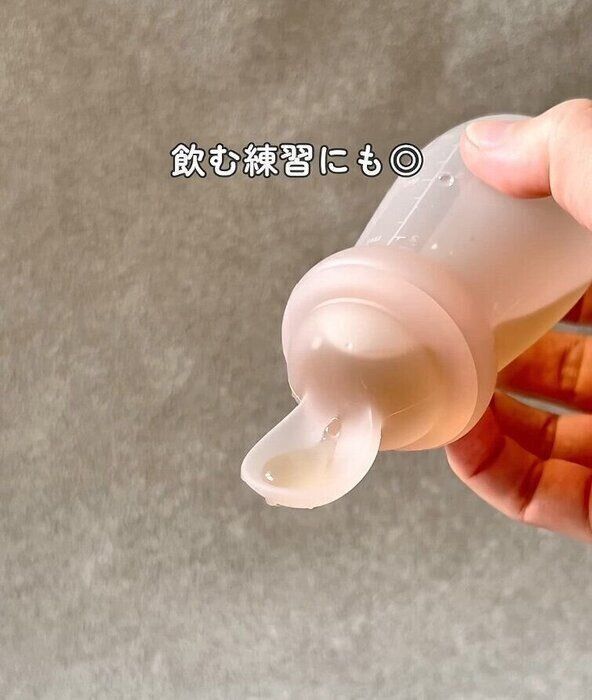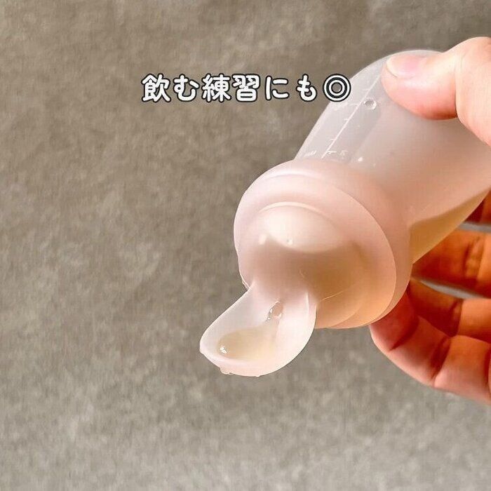 ori.mama_さんが3COINSで購入したのは、ボトルとスプーンが一体になった「フィーディングスプーン」。飲み物や離乳食初期のペーストを入れて使うのだそう。ボトルの押し加減でスプーンに出す量を調節できるようなので、こぼれにくくて便利そうですね♪ ふた付きで持ち運びもできるとのこと。こちらは770円商品のようです。