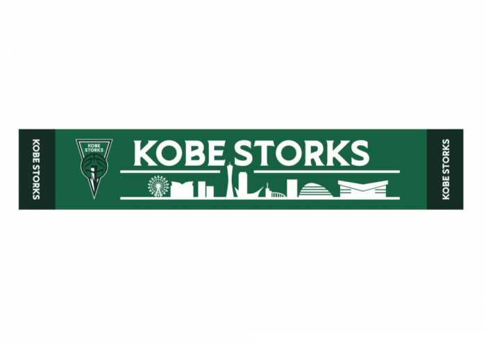 チームのロゴ入りマフラータオル。Gアリ、神戸ポートタワー、モザイク観覧車など、神戸ウォーターフロントの景観がデザインされているのもご当地感があって素敵です。