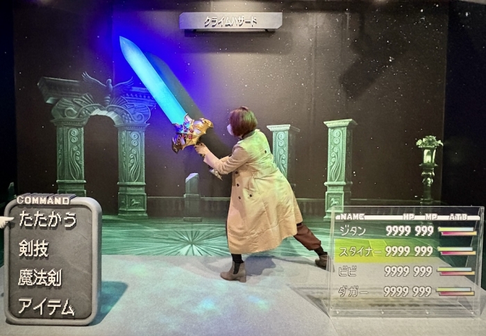 しかもこの「エクスカリバーⅡ」はガラスケースでの展示ではなく、なんと体験型のフォトスポットになっている。またとないチャンスなので、騎士になったつもりでガシッと構えてみよう。こんなことが出来るなら、もっとポーズを練習しておくんだった……と悔やまれる。ちなみに剣だけでなく、手前のコマンド選択ウィンドウも非常に再現度が高いので注目を。