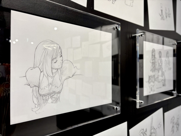 展示の前半を占めるのは、個性豊かな登場人物たち一人ひとりをピックアップする「キャラクター」のコーナーだ。メインキャラクターはもちろん、その他の重要キャラクターにもスポットが当たるのが嬉しい。