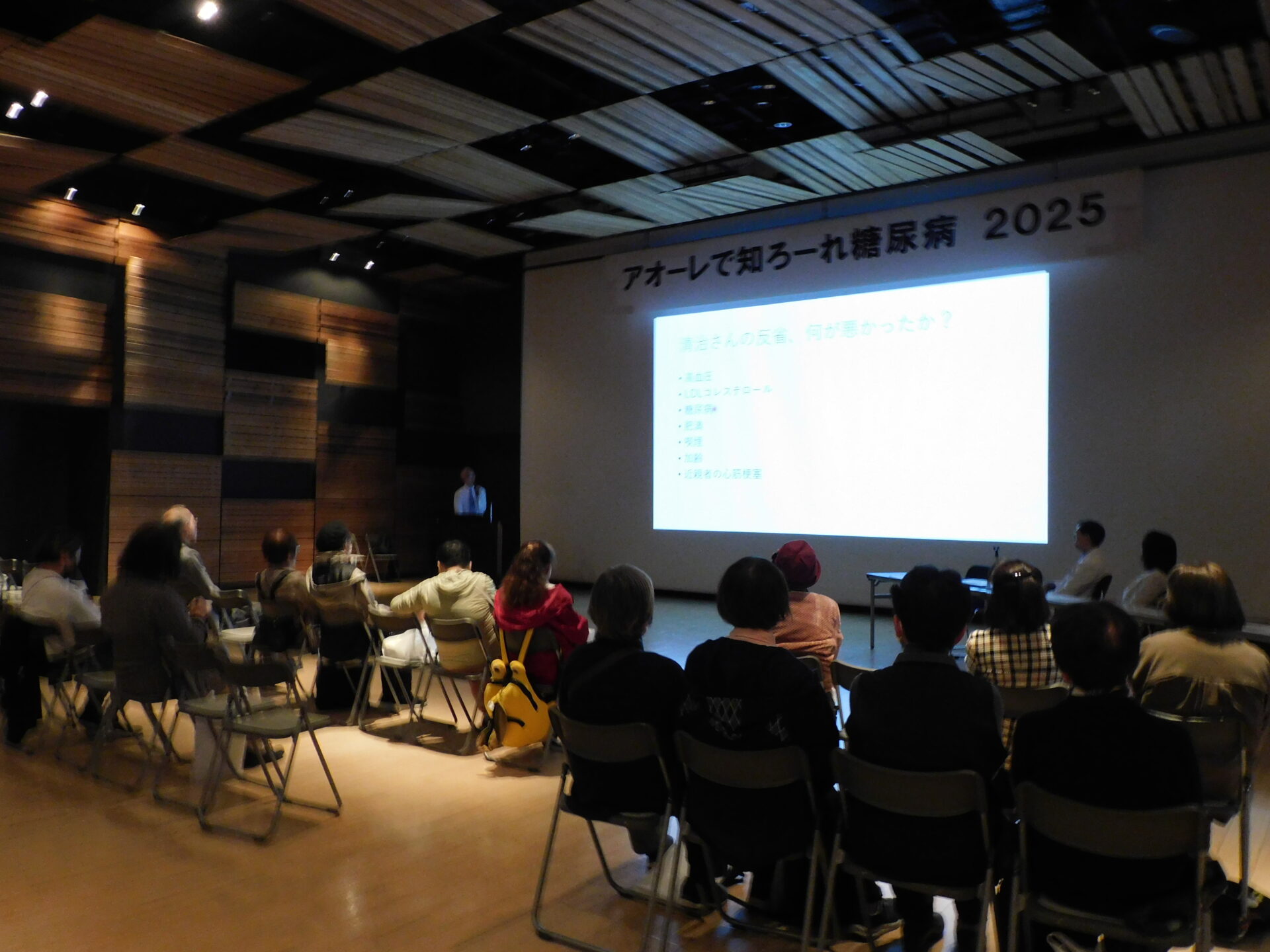 糖尿病やその合併症の予防をテーマにした啓発イベントが11月8日、アオーレ長岡で開かれ、医師らが所属病院の垣根を越えて生活改善の大切さを訴えた。主催は長岡市医師会と長岡ブルーライトアップ委員会。ホワイエでの血糖測定のほか、理想的な食品サンプルの展示などを実施。午後1時30分からは「糖尿病と運動」などをテーマに、合併症経験者の体験談も交えた実践的な内容を、長岡赤十字病院糖尿病内科の鈴木裕美氏らが講演した。
