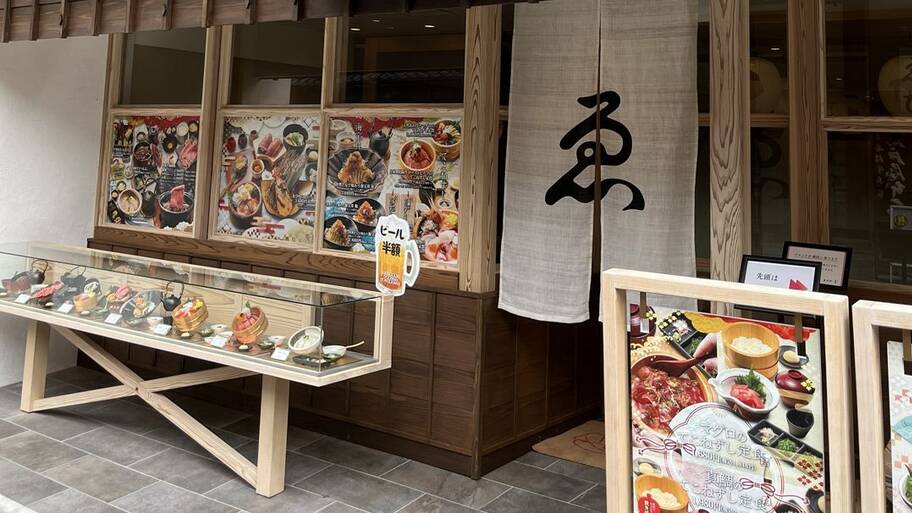 お冨さん ピア万代店(新潟市中央区)。ピアBandaiには近年、おにぎり店「さんかくともつ」もオープンした