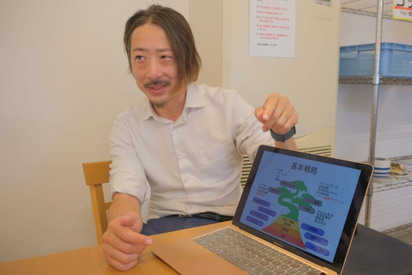 「造園業の経験があるので、どうしても木に例えてしまう」と笑う冨山社長。会社の根となるのは卸売業と、顧客である販売店・農家。小売やスマート農業などの事業は枝葉。互いに影響して成長しあう関係だが、「例えば、小売という枝が重くなりすぎると木が倒れてしまう」とバランスの重要性を説く