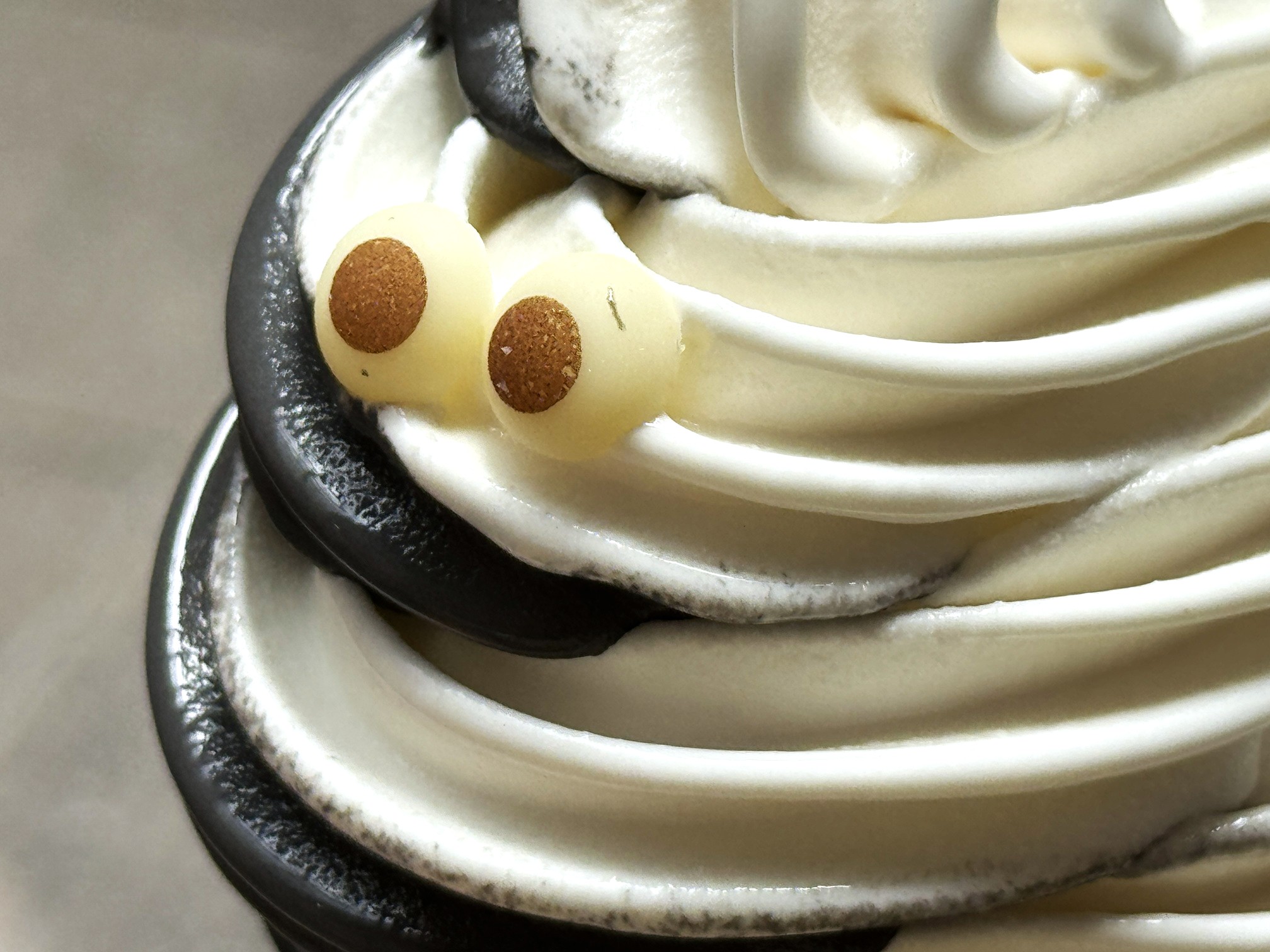 ただし、1点だけ気になったのは…、外気の蒸し暑さも相まって溶けてしまうのがとても早いこと。真っ黒なシュガーコーンとモノトーンカラーのソフトクリーム、可愛らしい目玉のトッピングはとても写真映えしますが、提供された直後からどんどん溶けはじめてしまうので、写真の撮影時には注意が必要です。
