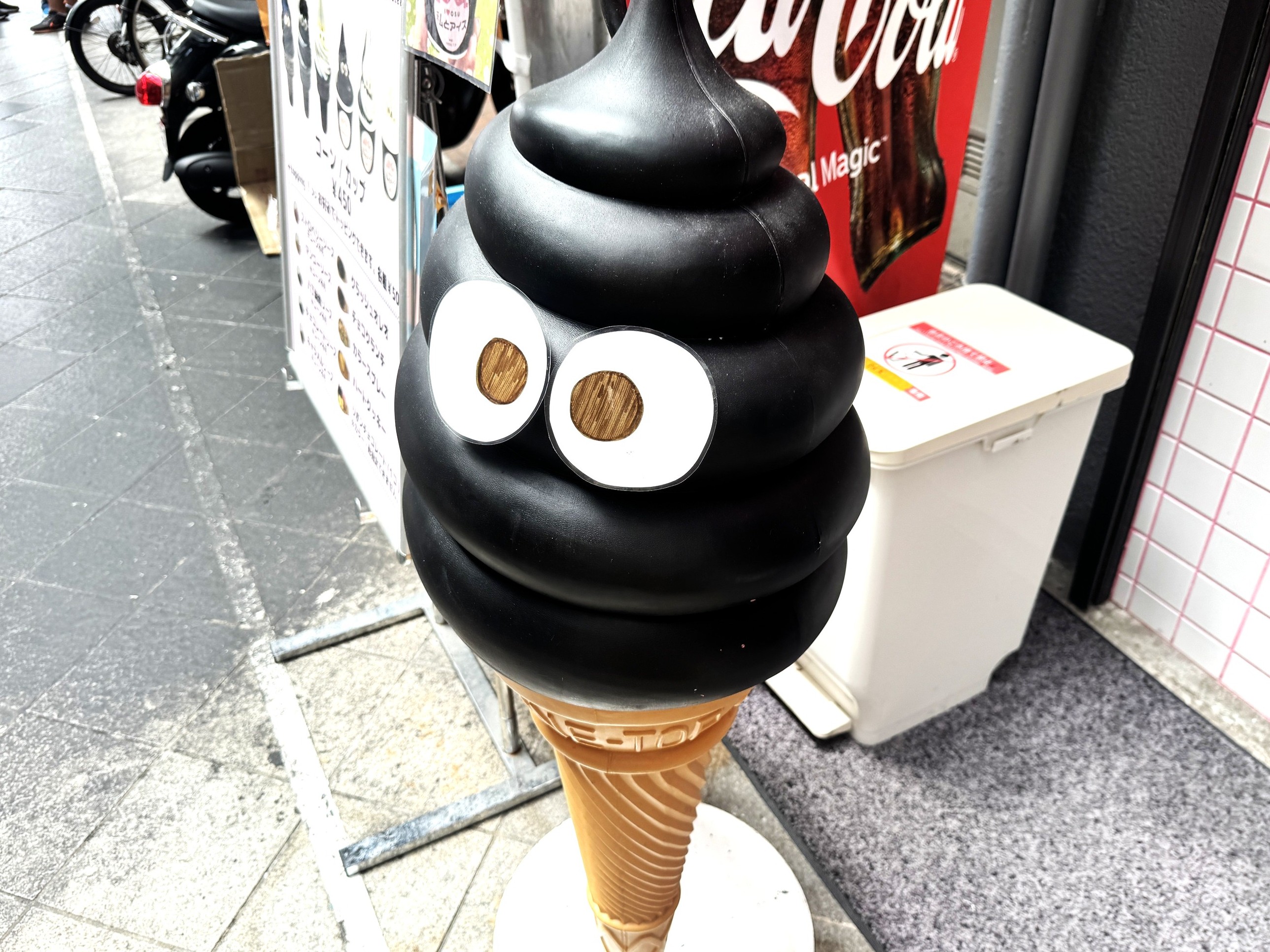 お店の前に置かれていたのは、真っ黒な顔をしたソフトクリームのオブジェ。
