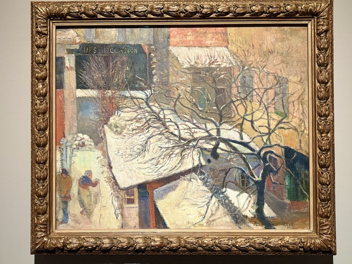 こちらはポール・ゴーガンの《雪のパリ》。といってもこの作品はファン・ゴッホ兄弟が購入したものではなく、後にコレクションに加えられたものだ。ファン・ゴッホとのアルルの共同生活が破綻した後、ゴーガンは自身の所有であるファン・ゴッホ作品3点について、オランダのヨーに連絡をとって返却を受けた。本作はその感謝の印としてヨーに贈られた作品のひとつだという。太陽のきらめく南仏アルルでの思い出を引き取ったゴーガンが、お返しに贈ったのが雪のパリの景色、という対比が切ない。