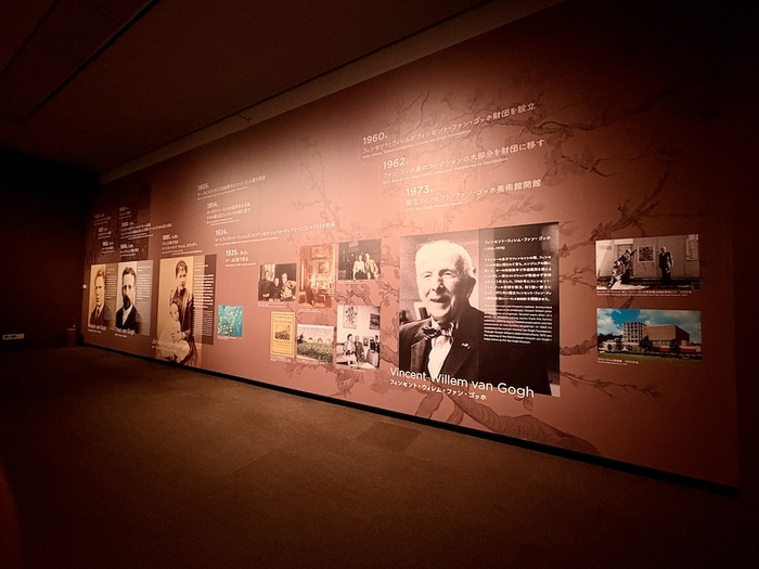 残された家族として、作品が市場に多く出回りすぎないように……かつ知名度を上げるため、出来るだけ多くの国に作品が届くように……と細やかな調整をしてきたヨー。解説パネルによると、ロンドンのナショナル・ギャラリーに傑作《ヒマワリ》を売却した際にヨーは、「フィンセントの栄光のための犠牲」という言葉を記していたという。その《ヒマワリ》は30年以上手元に残してきた傑作のひとつだったが、家族のものにしておくよりも、世界的に有名な美術館の収蔵品となった方が画家の名誉となるとヨーは判断したのだ。そういった葛藤や決断の末に、フィンセント・ファン・ゴッホは世界中の誰もが知る巨匠となり、自身が望んだ通りその作品は“100年後の人々にも届く”こととなった。まさに、家族が繋いだ画家の夢である。