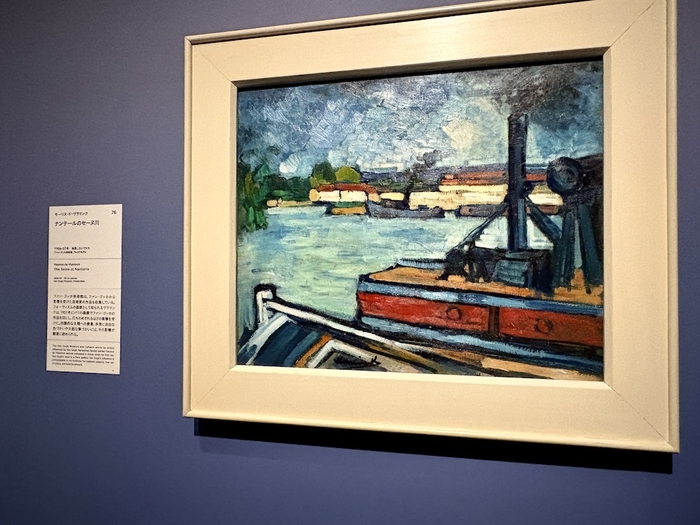 一方、こちらはフォーヴィスムの画家モーリス・ド・ヴラマンクの《ナンテールのセーヌ川》。ヴラマンクは1901年にパリの画廊でファン・ゴッホの作品を見て打ちのめされるほどの衝撃を受けたと語っており、赤・水色・黄色の強烈な色彩や力強い筆づかいには明らかにファン・ゴッホからの影響が見て取れる。