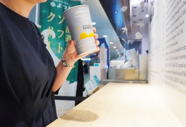 JR札幌駅構内にある『BEER STAND SORACHI』1号店はアルミカップでの提供のみとなっていますが、今回オープンした新千歳空港店は、グラスでの提供もOK。