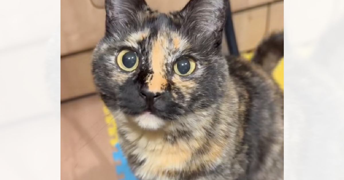 鳴き声が特徴的なサビ猫→名前を呼んでみると、『にゃ~』ではなく…可愛すぎる『お返事』が24万再生「ん?ってw」「ガチたまらん」と反響