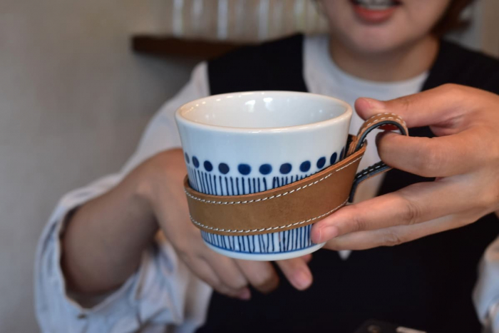 ホットコーヒーの器にまで皮が使用されていておしゃれすぎです♪好きな柄を選ばせてもらいました。