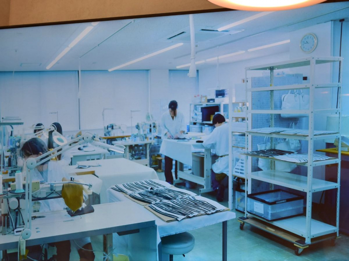 映像を見ているとキッチンカーでハンバーガーを売ったり、サロンカーでかばんを販売したり、CREEZAN城崎本店を手掛ける『コニー株式会社』自体に興味がわきました。白いかばんをつくる職人さんたちは白衣着用で白い手袋をし、テーブルにも白い布を掛け、徹底的な管理の元、最高峰の豊岡鞄を手掛けています。