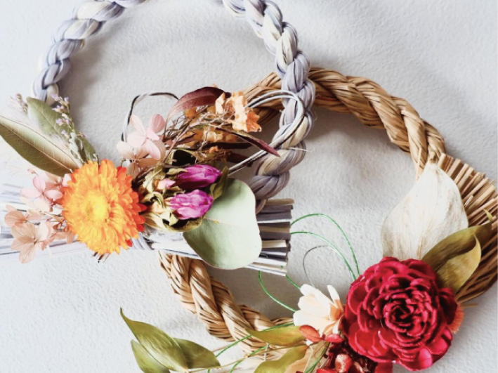 既製品のしめ縄もいいけれど、好きなお花や水引を選んで作る「世界に一つだけのしめ縄」なら、新年を迎える準備がいっそう楽しくなりますよ。