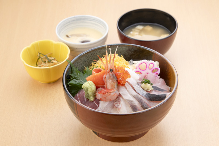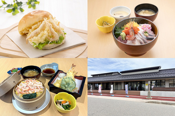 レストランやカフェを設ける「食遊館」では、同駅名物の「白エビバーガー」をはじめ、「カニわっぱ」や「サクラマスピザ」、「海鮮丼」など、富山湾の海の幸を堪能できる射水グルメが勢揃い!