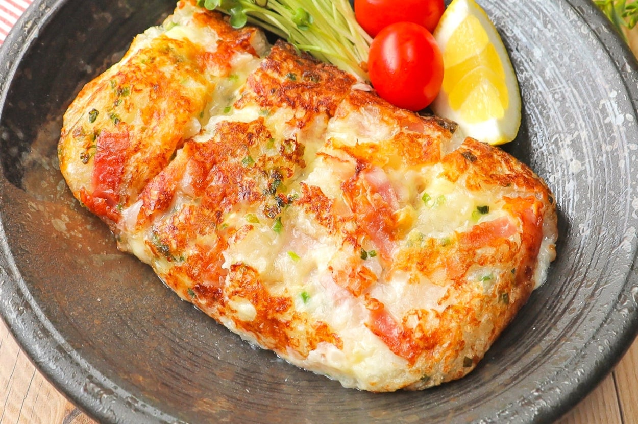 大根あったらこれ一択!千切りにしてチーズとベーコン混ぜて、卵焼き器で焼くだけ!外カリ中もちっの「ベーコンチーズ大根もち」のレシピをご紹介します。