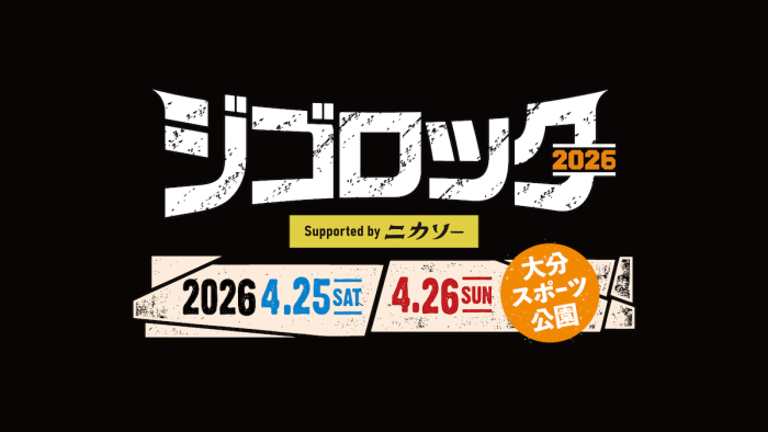 TOSテレビ大分が主催する大型野外音楽フェス『ジゴロック 2026 supported by ニカソー』の開催が決定した。来年・2026年4月25日(土)・26日(日)の2日間、大分スポーツ公園(大分市横尾)での開催となる。