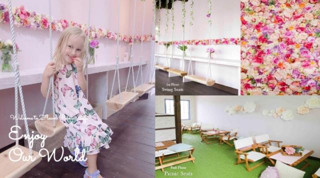 「フラワーピクニックカフェ」という店名どおり、ピクニック気分を楽しめる空間設計も魅力のひとつ。ブランコ席や人工芝のピクニックシート、花に囲まれたソファ席など、思わず写真を撮りたくなるスポットが満載です。