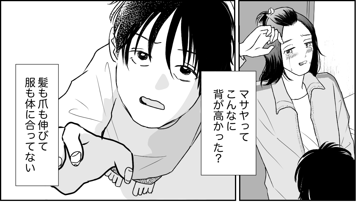 私は改めてまじまじとマサヤのことを見ました。髪も爪もずいぶん伸びてるし……服もなんだか小さくなって……。