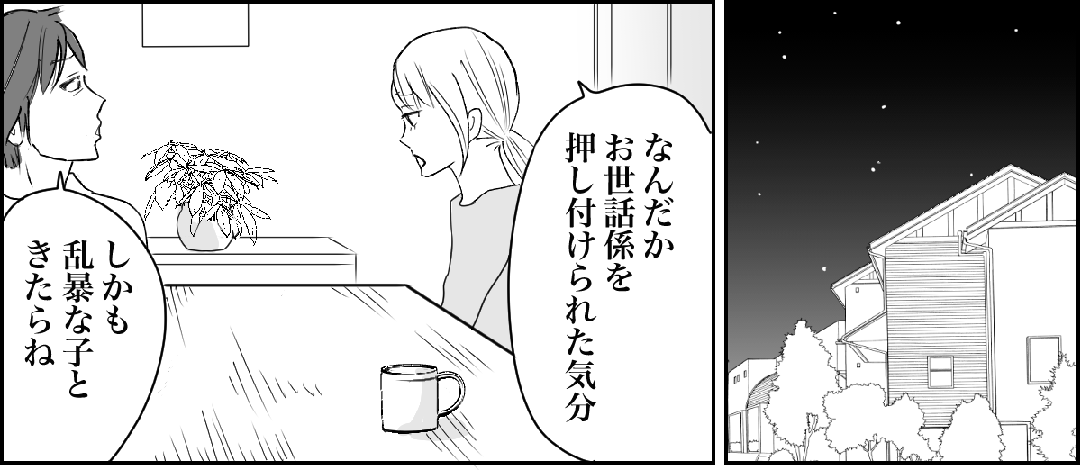 ハルカちゃんママとやりとりをした後、あらためてお世話を押し付けられる怖さを思い知り、ゾッとしました。