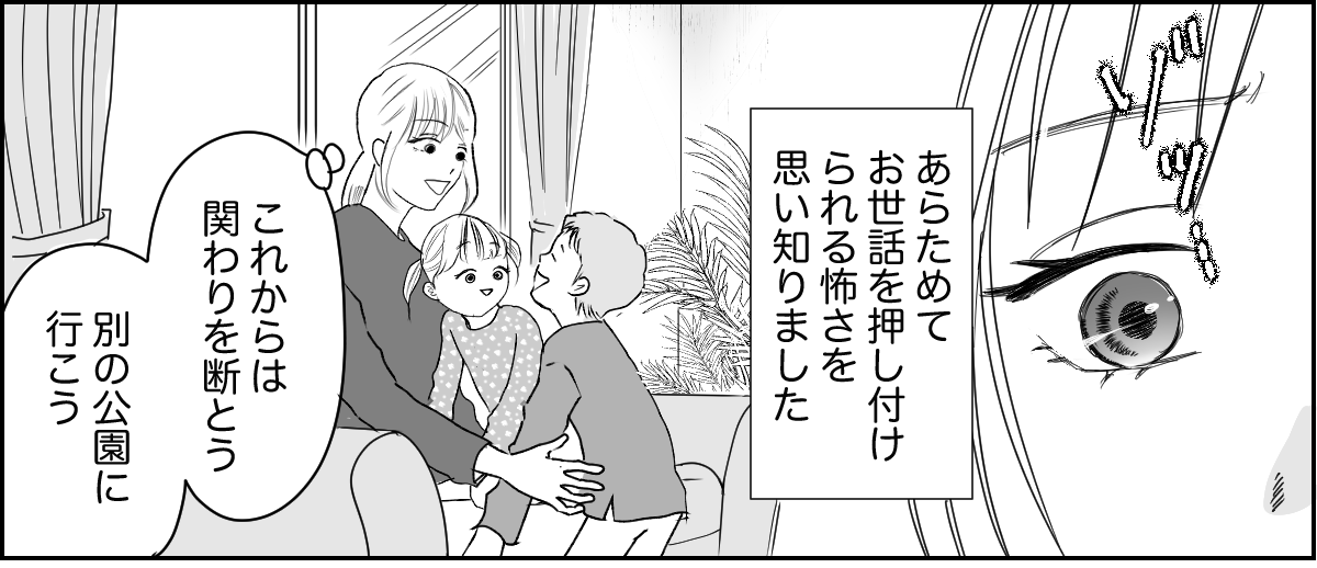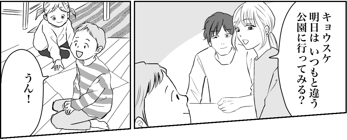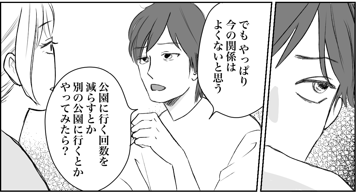 夫のサトシに話をしてみたところ、「今の関係は良くない」と言われてしまいました。 とはいえ「もう面倒を見るのはごめんです!」と強く出てしまうと、あちらの反感を買ってしまうかもしれません。 そうなったら根も葉もないことを言いふらされる可能性だってあります。私だけならまだしも、キョウスケにまで影響があったら困ってしまいます。そこで夫婦で相談をして、私はフェードアウトという方法を選びました。さっそく明日は違う公園へ行く予定です。
