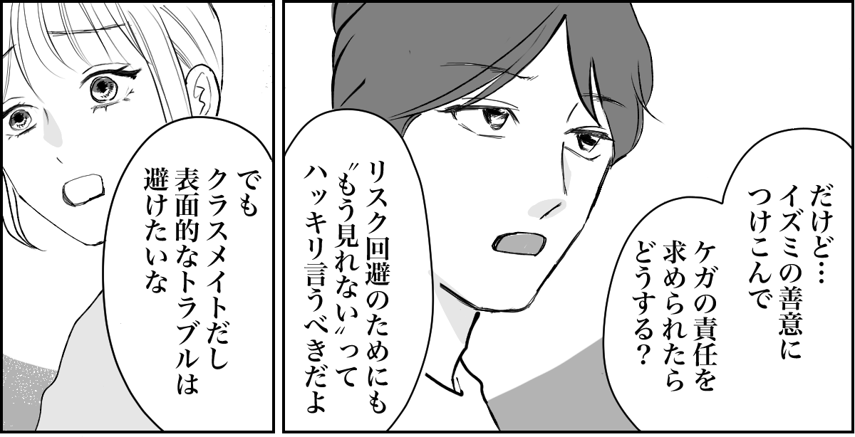 夫は「リスク回避のためにも“もう見れない”ってハッキリ言うべきだよ」と、冷静な口調でアドバイスをしてくれました。でも、キョウスケのクラスメイトなので表面的なトラブルを避けたい気持ちがあります。