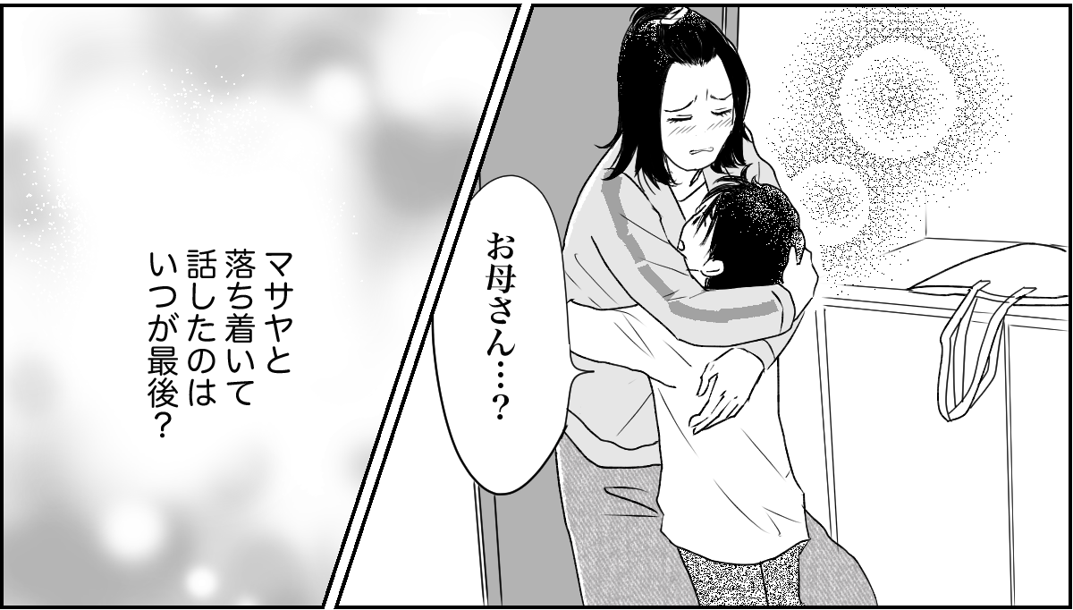 私はマサヤを抱きしめました。こうして触れ合ったのも久しぶりな気がします。マサヤはキョトンとしています。