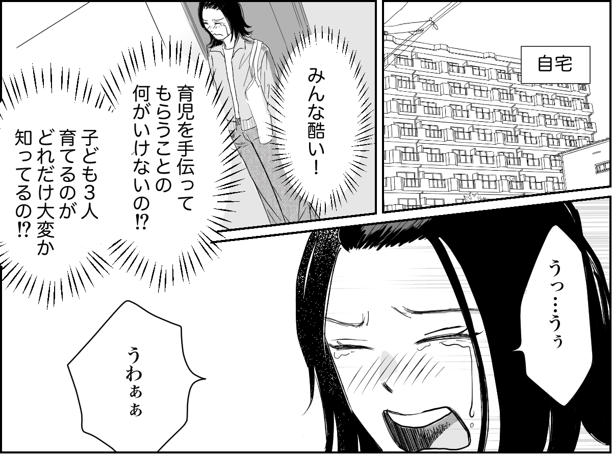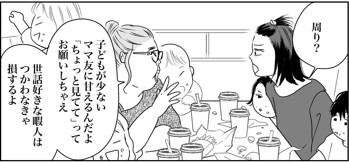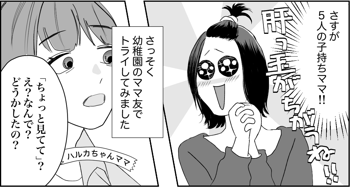 そこで私は早速、幼稚園でマサヤの同級生のハルカちゃんママに甘えてみることにしました。しかし、しっかり者のハルカちゃんママに頼ろうとしたら、ハッキリと断られてしまいました。私は後日、その“失敗談”を子だくさんのママ友に話します。すると……