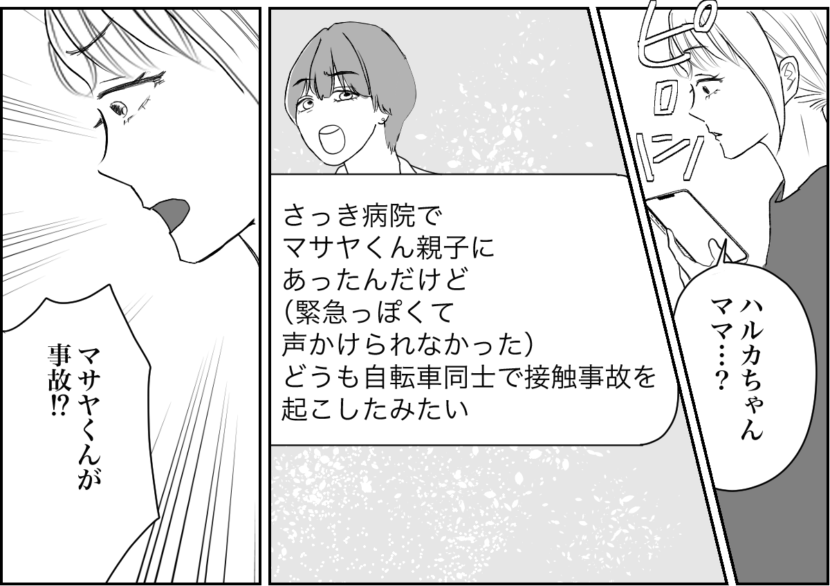 ハルカちゃんママは私がいつもマサヤくんの面倒を見ているから何か事情を知っていると思い、連絡してきたようです。