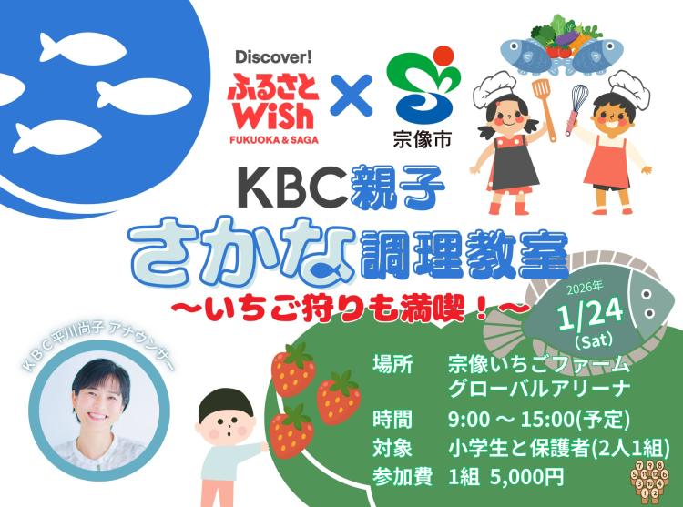 【12/14募集締切】宗像市の冬の味覚を満喫!親子で楽しむさかな調理&いちご狩り!2026年1月24日(土)開催『ふるさとWish×宗像市 KBC親子さかな調理教室~いちご狩りも満喫!~』【イベント】